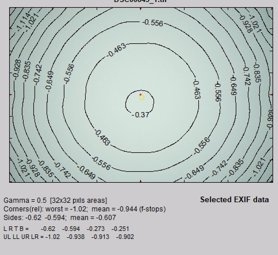 适马45mm f/2.8 DG DN 的全开光圈暗角为:1.02EV