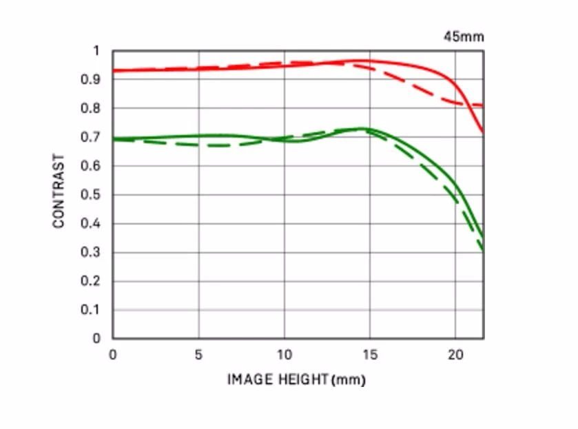 为什么强调“中远景”呢,因为一支镜头在不同工作距离下的分辨率其实是不一样。一般情况下近摄时的分辨率要弱一些但是镜头在光学设计的时候都会尽量去校正近摄球差,大部分镜头不是极限近摄的前提下分辨率与无限远拍摄的差距基本可以忽略。而适马这支45mm镜头,采用比较特别的设计,主动保留了球面像差。这样做的目的一方面让焦内到焦外过度以及焦外虚化的表现更柔和,但另一方面这支镜头在近摄时分辨率会下降。