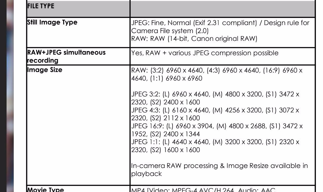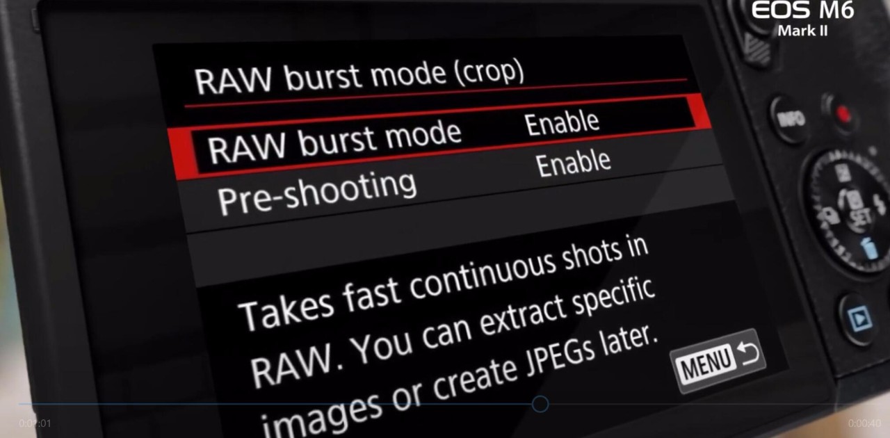 还有那个神奇的RAW-Burst Mode,在宣传视频的菜单截图里看到了Crop字样,可能是裁到比如1英寸幅面(剩下11.4MP)之类的小画幅格式然后实现30帧输出,规格表和视频里也都没说能不能连续自动对焦我觉得以佳能的尿性多半也是不行的,当个添头就好了反正也没什么副作用有总比没有强嘛。