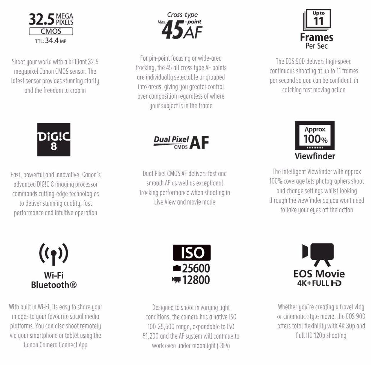这两款产品本身的新特性差不多就这些,对于较少使用CMOS本身自带功能的单反相机EOS 90D来说可能最明显的体验感受就是像素的提升和连拍速率的增加,以及处理器什么的增加一些新功能。而且APS-C单反现在处于一个极度尴尬的环境,90D作为佳能两位数机身估计价格也便宜不了,除非手里已经攒了不少EF-s的镜头还没有出掉否则感觉选购意义实在是不大,或许佳能推出它的主要意义还是在于守成,对于它能带来多少新用户这件事情,本身也没做太多指望。