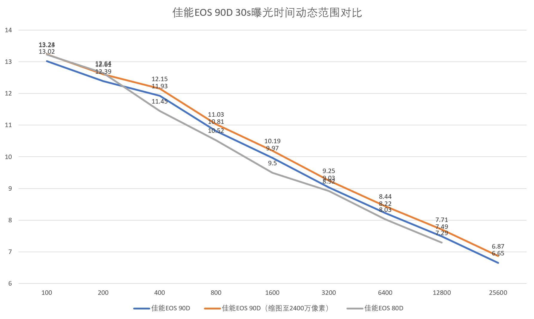 基准ISO下的实际宽容度表现EOS 90D和EOS 80D相差不多,但虽然信噪比差不多不过EOS 90D的新CMOS改善了暗部的偏色和条纹斑点之类的问题,同样的信噪比下相比EOS 80D拥有更好的观感和更高的可用度,不得不说这也是一个非常可喜的进步。