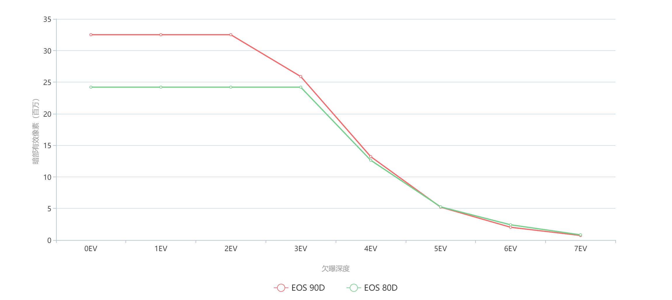 我们都知道单纯的动态范围只在画幅和量子效率相同的机身之间具有直接判定宽容度的价值,对于不同的传感器,实际曝光宽容度还需要进行测试。测试结果以“暗部有效像素”来表示,可以准确反映该相机能达到的实际宽容度。
