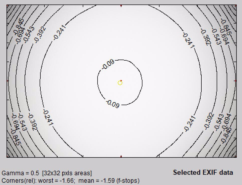 暗角方面不是很明显,也基本集中在四个角的位置才开始肉眼可见,属于比较不错的水平。