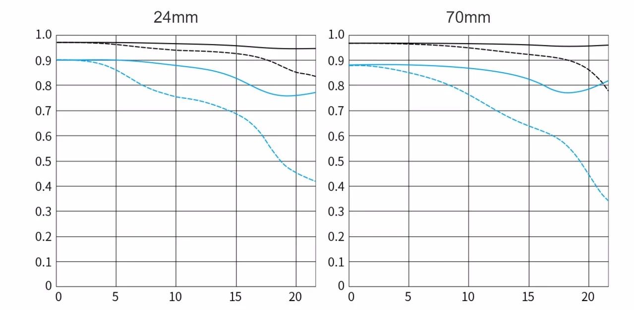 分辨率-焦距分布契合度:极致,各个焦距的分辨率表现比较均匀,但仔细比较的话也是两头稍强中间稍弱,符合这支镜头的主要用途(24-70这种镜头基本上都是用两端的多,主力用中间焦距的摄影师基本都去配35、50这些便宜又好使的定焦镜头了……)