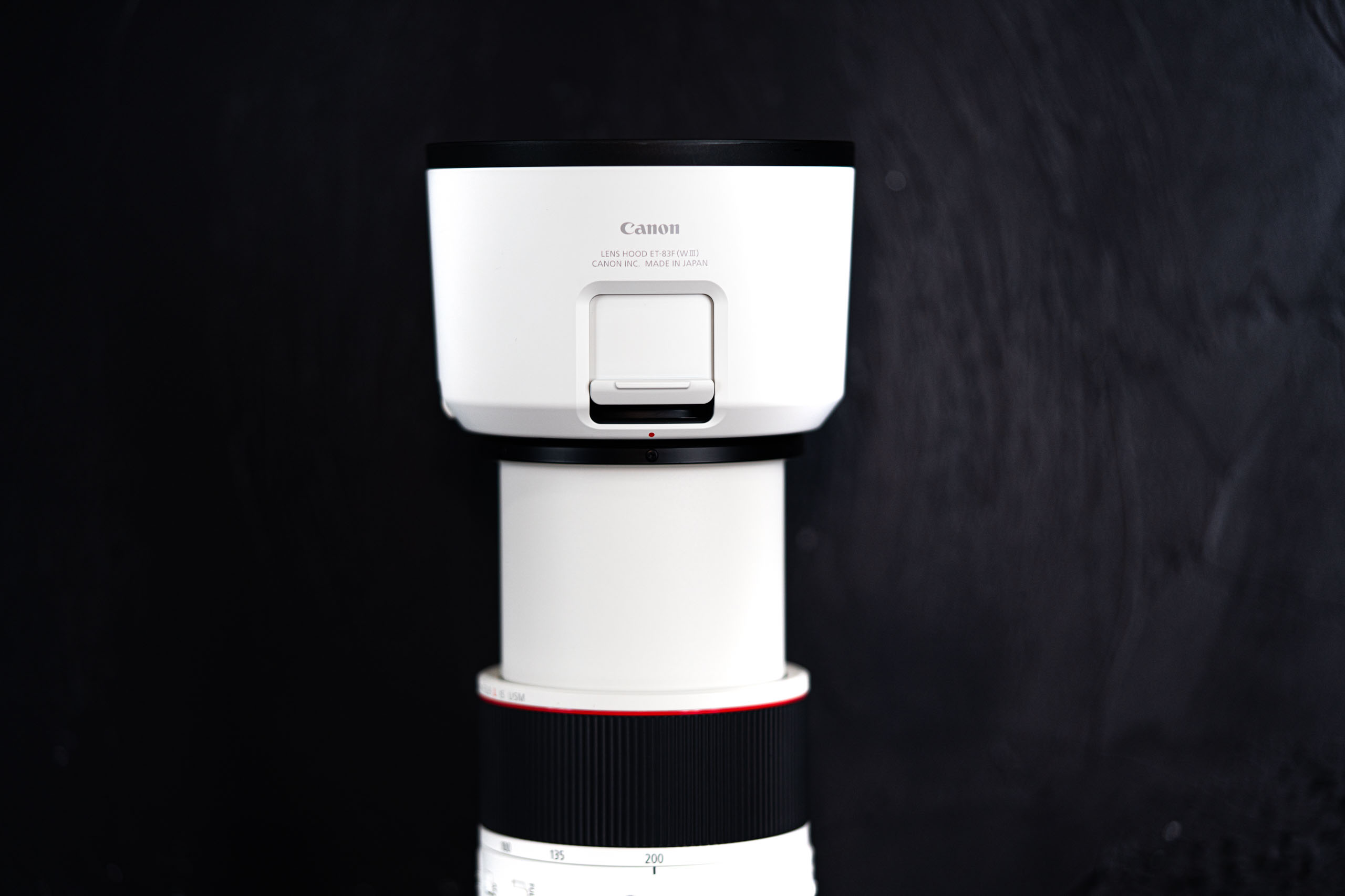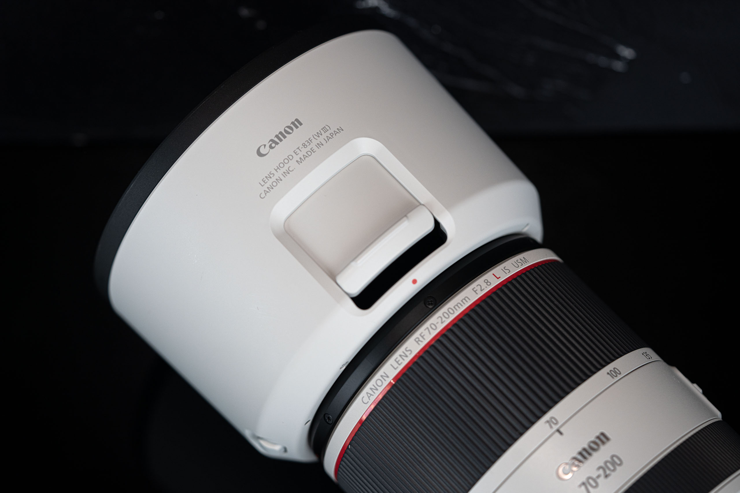 遮光罩是圆形的ET-83F,之前70-200/2.8镜头标配莲花罩的规则也被打破了。上面还预留了一个用来扭偏振镜的窗口。