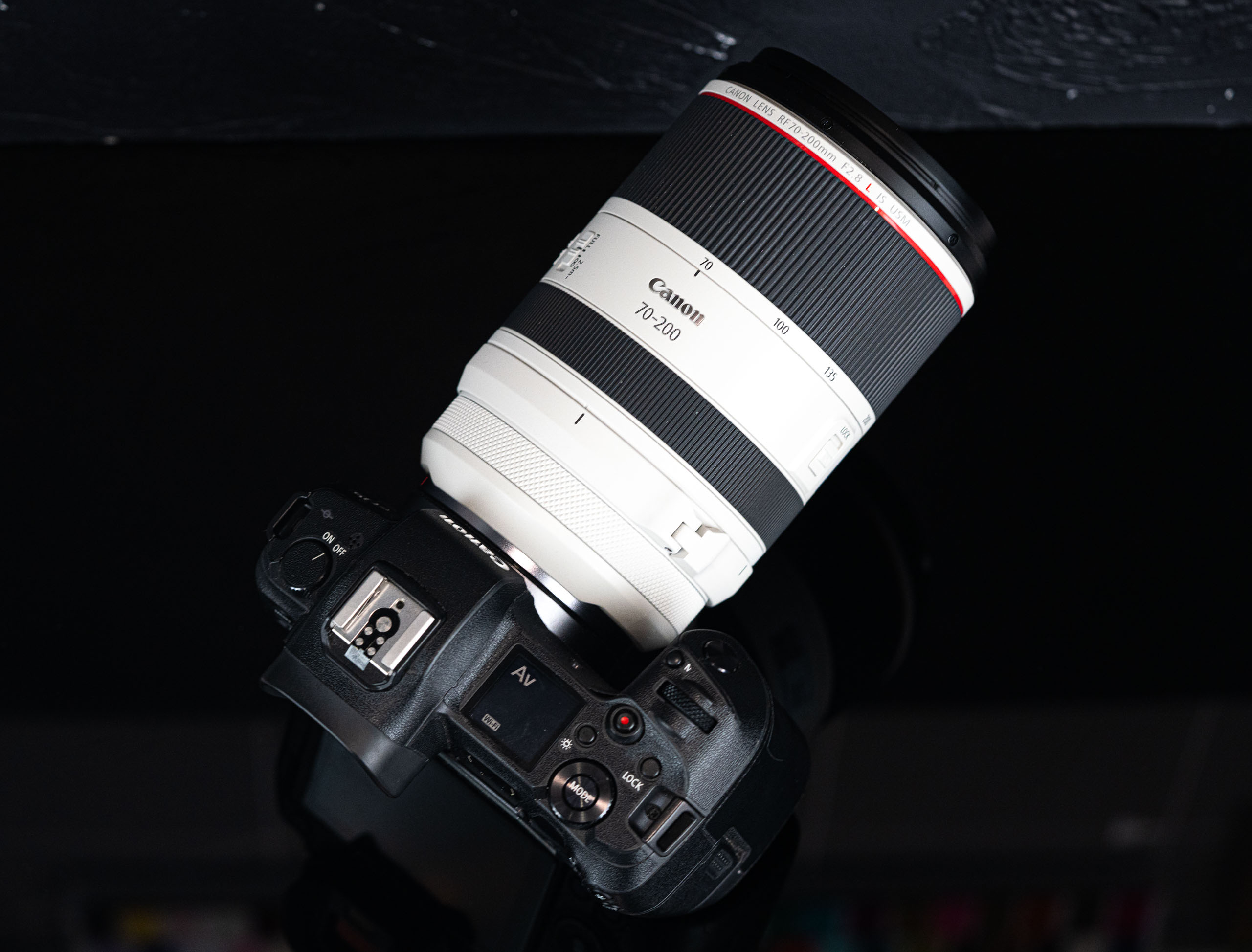 装机效果如下,作为体积最小的70-200/2.8镜头,装在EOS R微单机身上协调程度还是挺不错的。