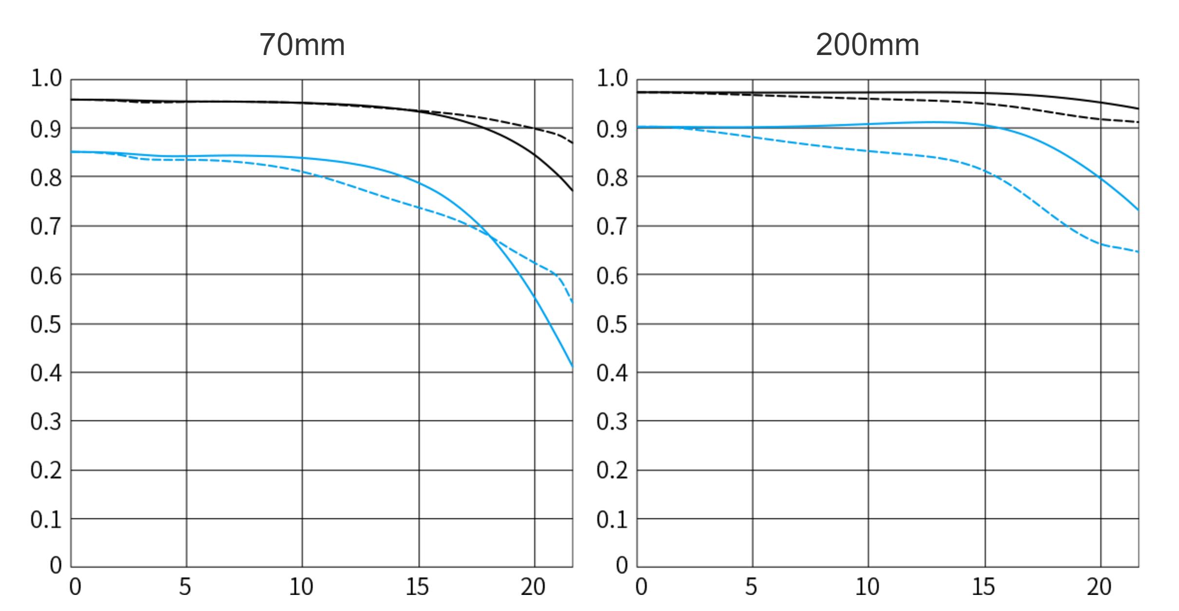 分辨率-光圈分布契合度:极致,虽然整支镜头从分辨率数据上来看最佳光圈位于f/4,但是除了70mm端之外,f/2.8和f/4的差距非常小,对于一支用大光圈要么稳定快门速度要么获取虚化的镜头来说,全开几乎就是最佳无疑是对这支镜头常规使用场景巨大的BUFF。至于70mm端对这支镜头而言不是太常会用到的焦距,稍有缺憾就稍有缺憾吧,再考虑到这支镜头在设计思路方面的新意,给个极致以示鼓励。