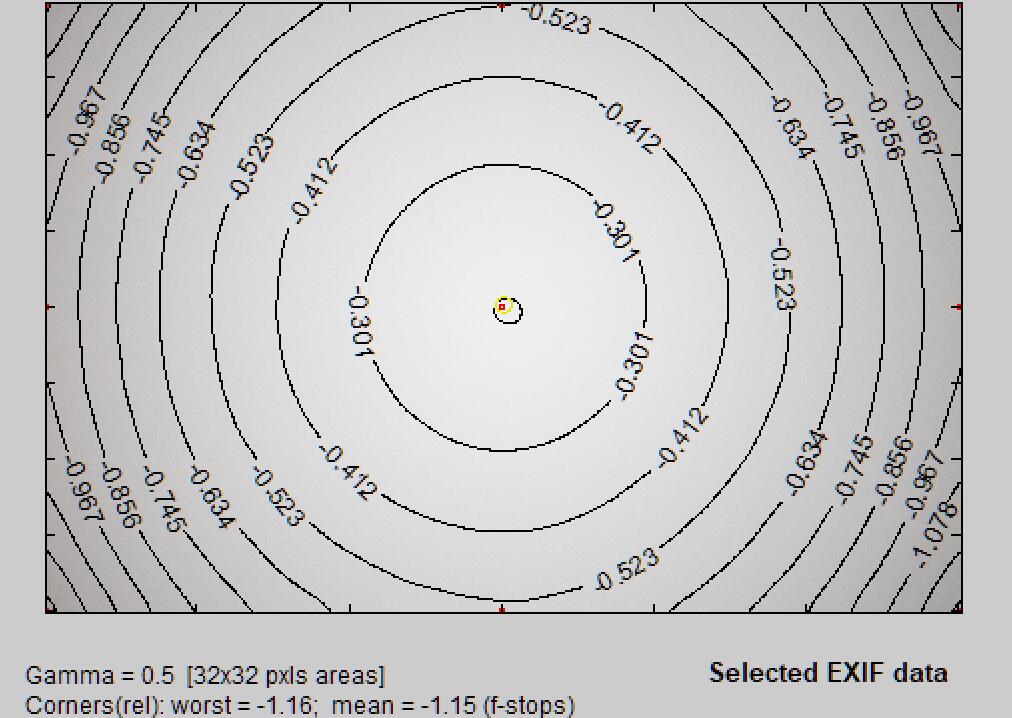 3、在考虑了畸变校正和倍率色差修正对于分辨率的影响之后输出最终的分辨率测试结果。原始的倍率色散(关掉能关的校正之后)和畸变数值一并给出,仅供参考(防止色散实在太大在大光比环境下翻车的情况)。
