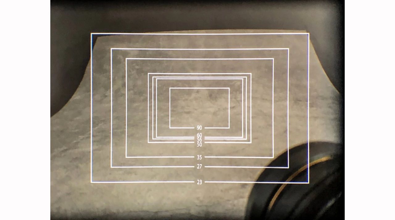 旁轴的取景虽然有视差,但是也有方便的地方。比如想拍一个场景,如果拿不准不同焦段的取景范围,可以拨下拨杆调出不同焦段的框线。我们可以看到X-Pro3的最大框线依旧还是到23,如果使用更广的镜头想精确构图,还是用EVF更好些。