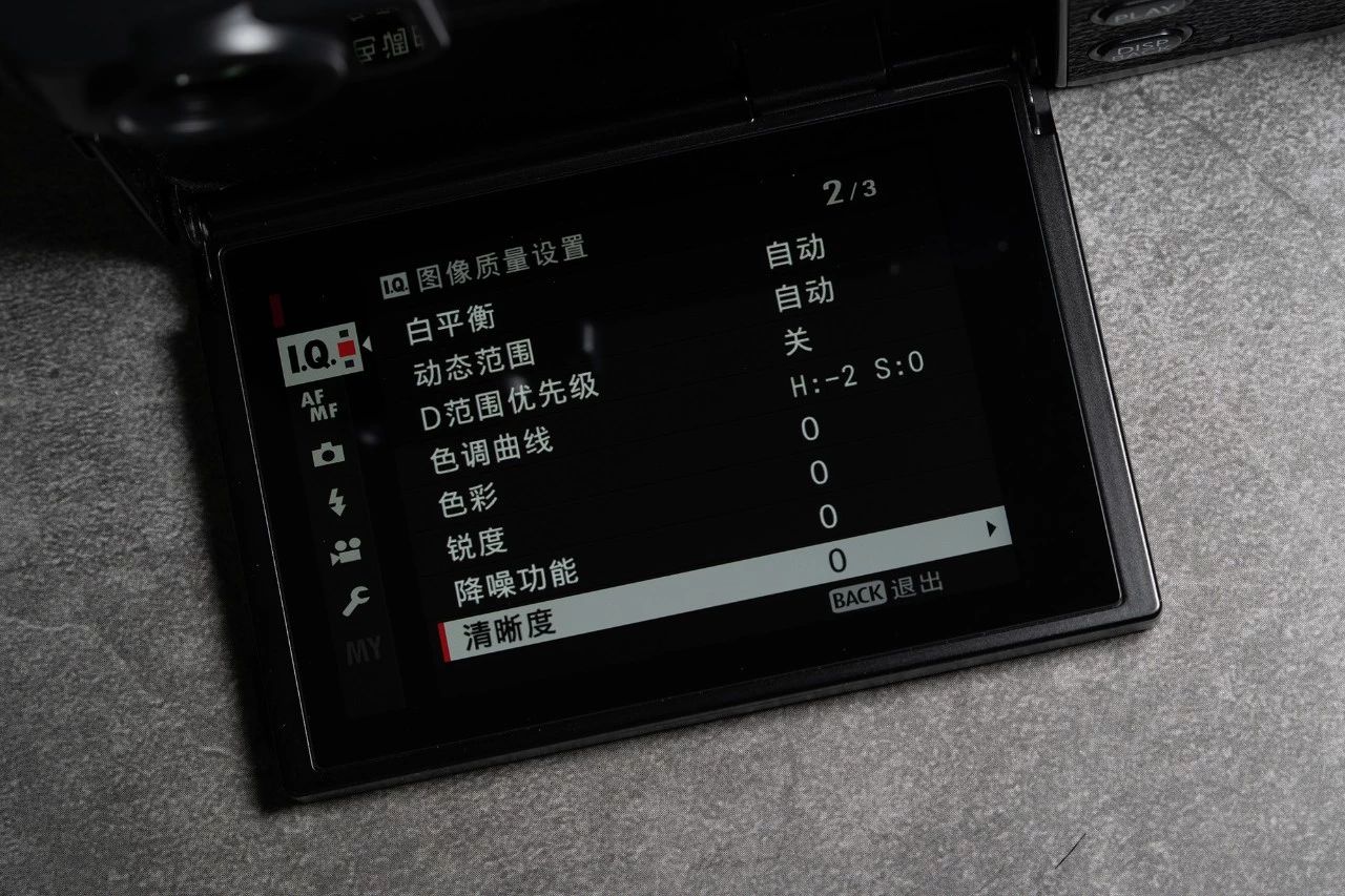 其他参数方面我会在色调曲线高光部分-2;动态范围设成自动,另外X-Pro3新增了清晰度的调成选项。经常用PS和LR的人肯定不陌生,我简单试了下发现机内的区别不大,所以就用默认值了。