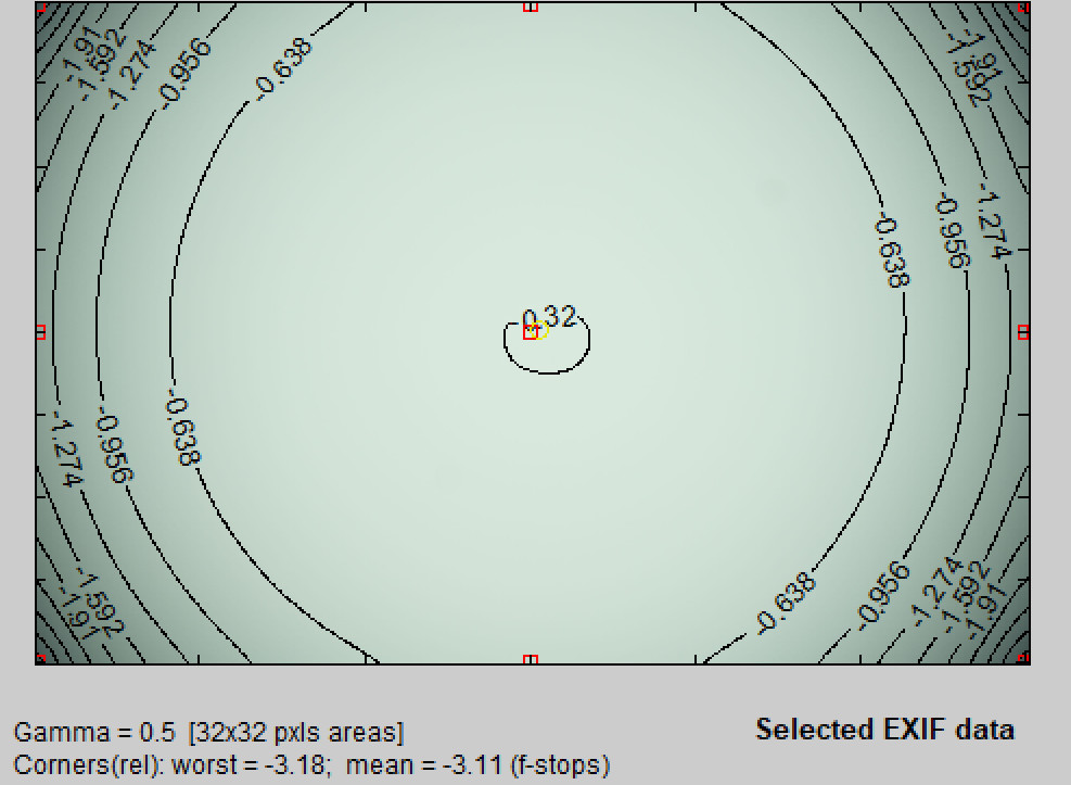 3、在考虑了畸变校正和倍率色差修正对于分辨率的影响之后输出最终的分辨率测试结果。原始的倍率色散(关掉能关的校正之后)和畸变数值一并给出,仅供参考(防止色散实在太大在大光比环境下翻车的情况)。