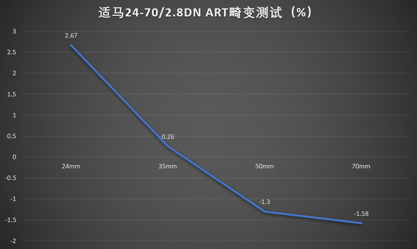 畸变这块数值是一方面,适马24-70mm f/2.8 DN ART的广角端畸变呈现不规律的翘胡子状,非常难以自行修正,机内校正或者后期加载校正配置文件是不可缺少的东西。