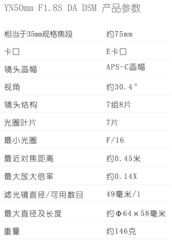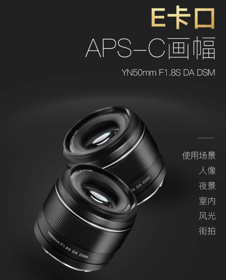 永诺发布YN50/1.8 DA DSM索尼E卡口APS-C画幅镜头,售价699元