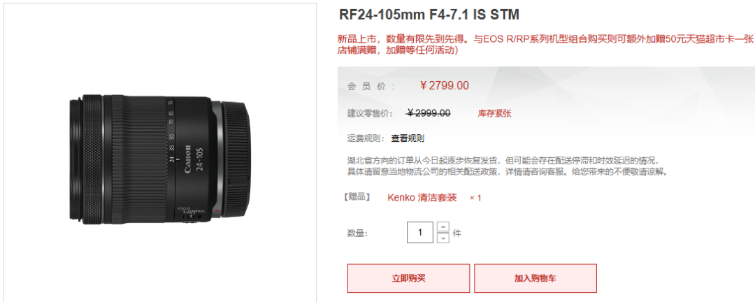 佳能RF 24-105mmF4-7.1 IS STM开始发售,佳能会员价2799元