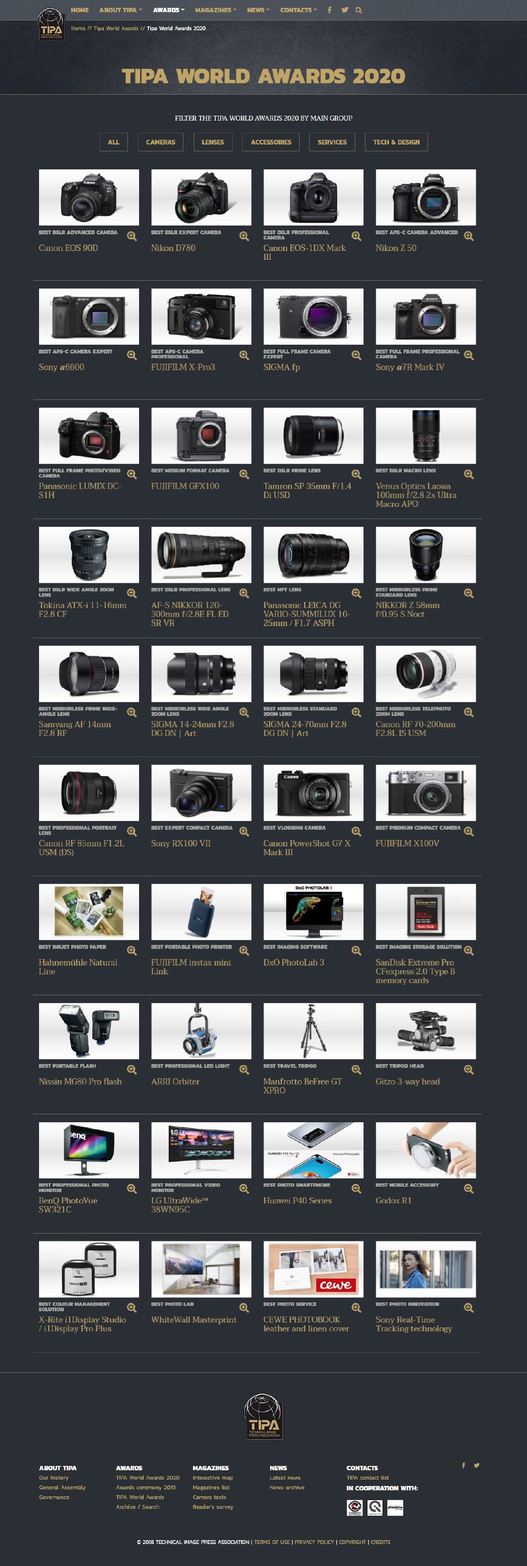 TIPA公布了今年的年度大奖,基本上人人有份,其中各个品牌的获奖情况为: