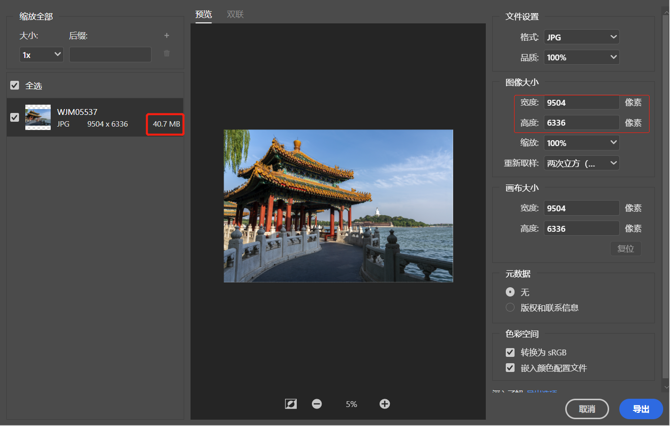 40MB这个尺寸已经比尼康2400万像素无损压缩的RAW还要大了,与索尼2400万像素无压缩RAW也很接近。同时目前微信聊天中单张传图限制还是25MB,诸多的限制让6000万像素的优势很难完全发挥出来。
