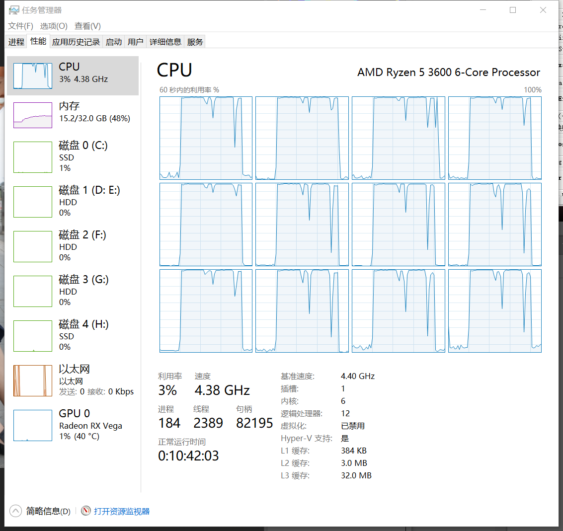 首先我们看一下在ACR中修α7R IV的图的系统负载。此时CPU总体还是比较空闲的,无论是负载还是功耗情况都显示CPU没有太大的压力。