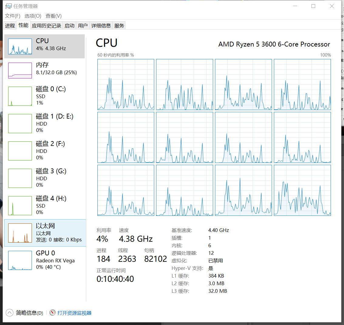 在Lightroom中,修图的CPU占用情况与ACR类似,基本也是跑不满。