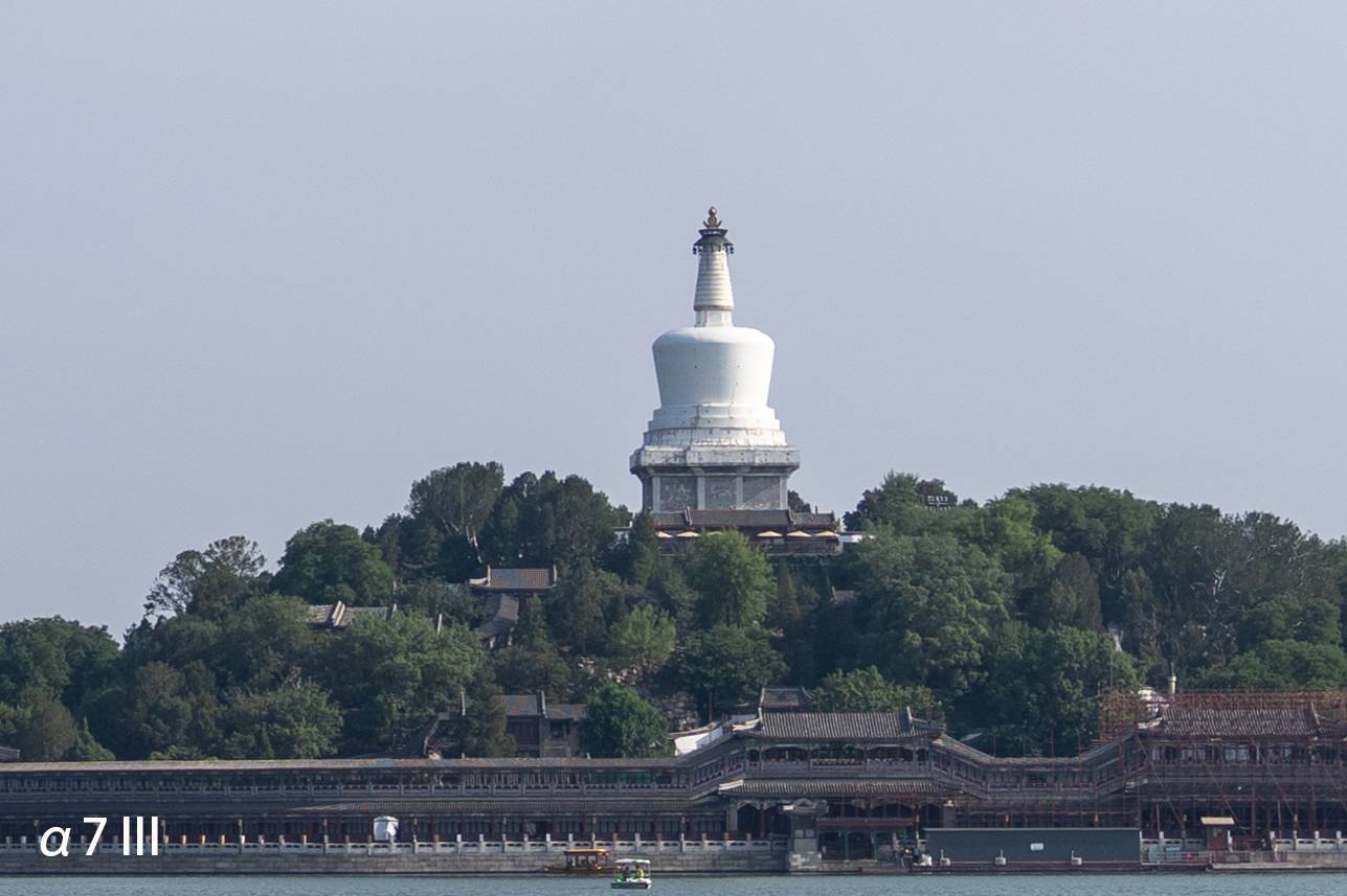即使我们在最终输出时不需要高像素,高像素机型所带来的优势也是很明显的。我们这里把α7R IV的图先缩小到2400万像素,再裁切到白塔。当两款相机拍摄的图片像素相同时,高像素带来的超采优势一样可以提供更好的画面观感。