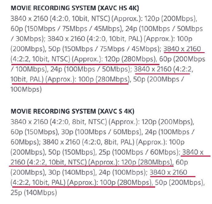 这个卡是真的贵,但好在对于高规格视频录制方面,索尼并没有卡太死。XAVC HS 4K 10bit 4:2:2录制120P的码率在280Mbps,用高速UHS-II存储卡就可以完成录制: