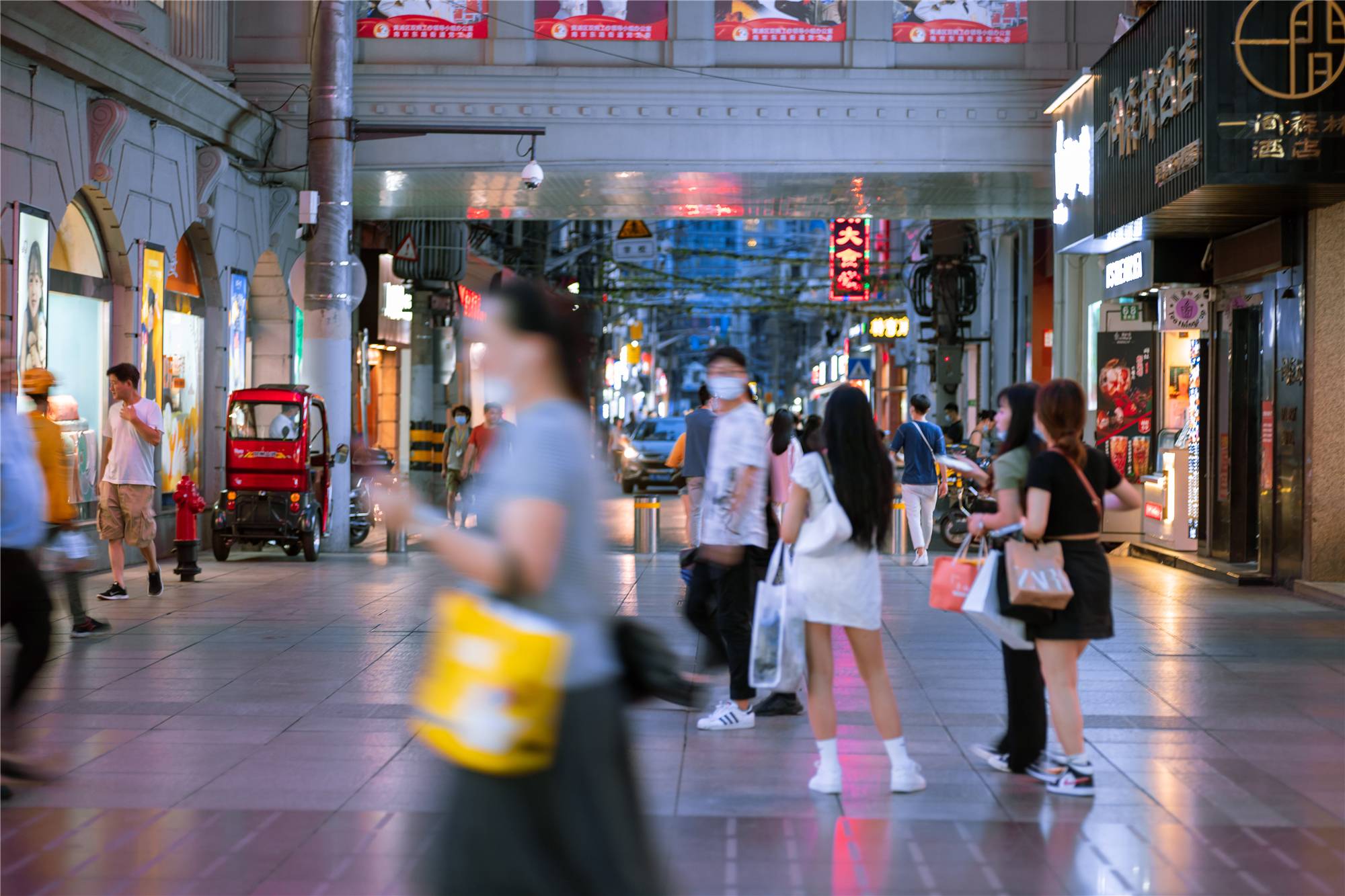 在体验期间,我拿着这只镜头去外滩拍摄,这时体积和重量让我相当舒服,F2的大光圈在南京路步行街上ISO大致在1000左右,快到外滩时经常3200起跳。在晚上,外滩的灯光相当复杂,因此直面强光源就是家常便饭了。