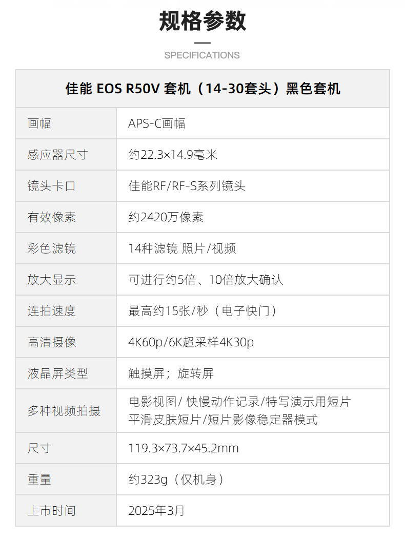 佳能 EOS R50V 套机(14-30套头)黑色套机