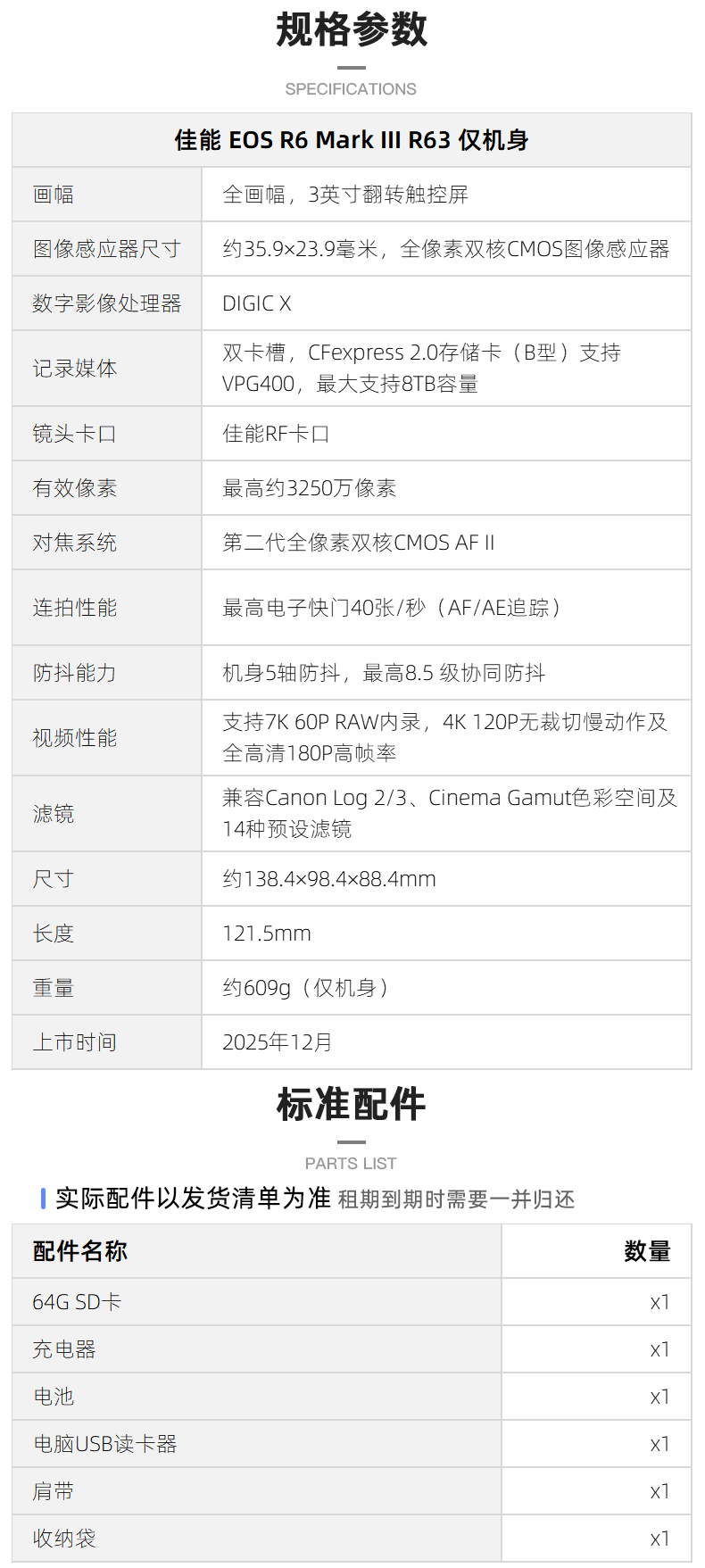 64G SD卡、充电器、电池、电脑USB读卡器、肩带、收纳袋