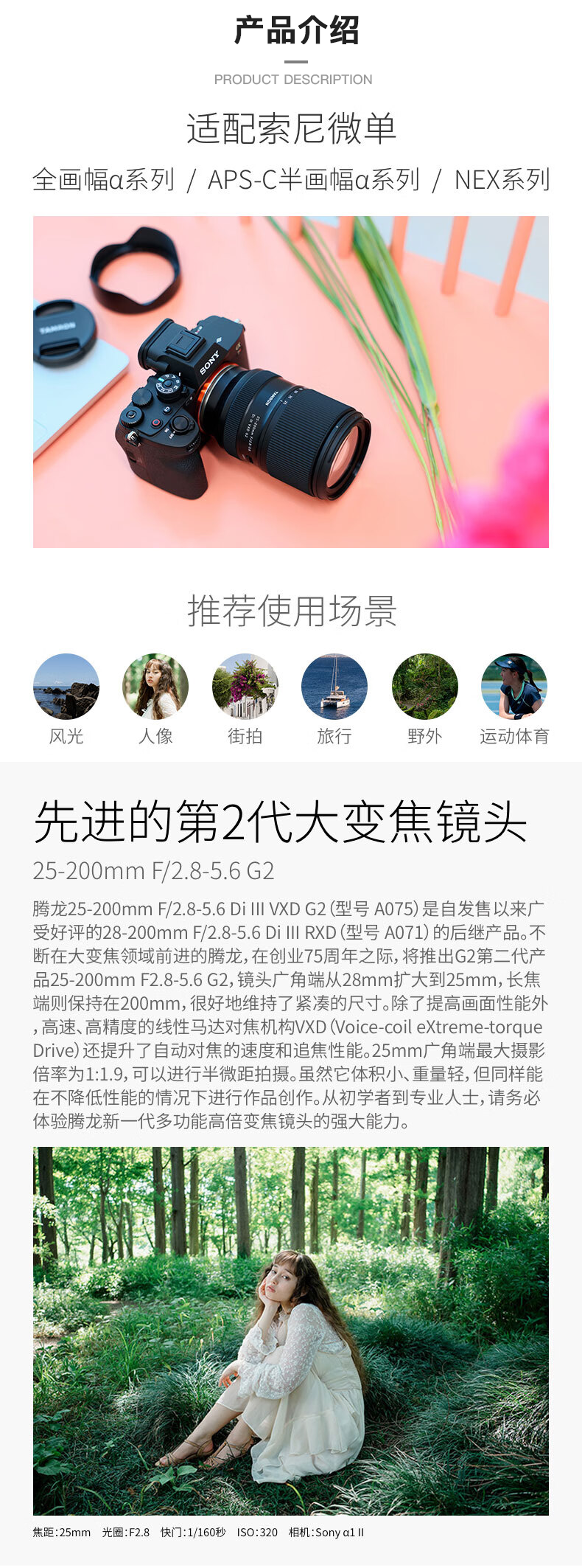 腾龙 25-200mm F2.8-5.6 Di III VXD G2 (A075) 索尼FE口